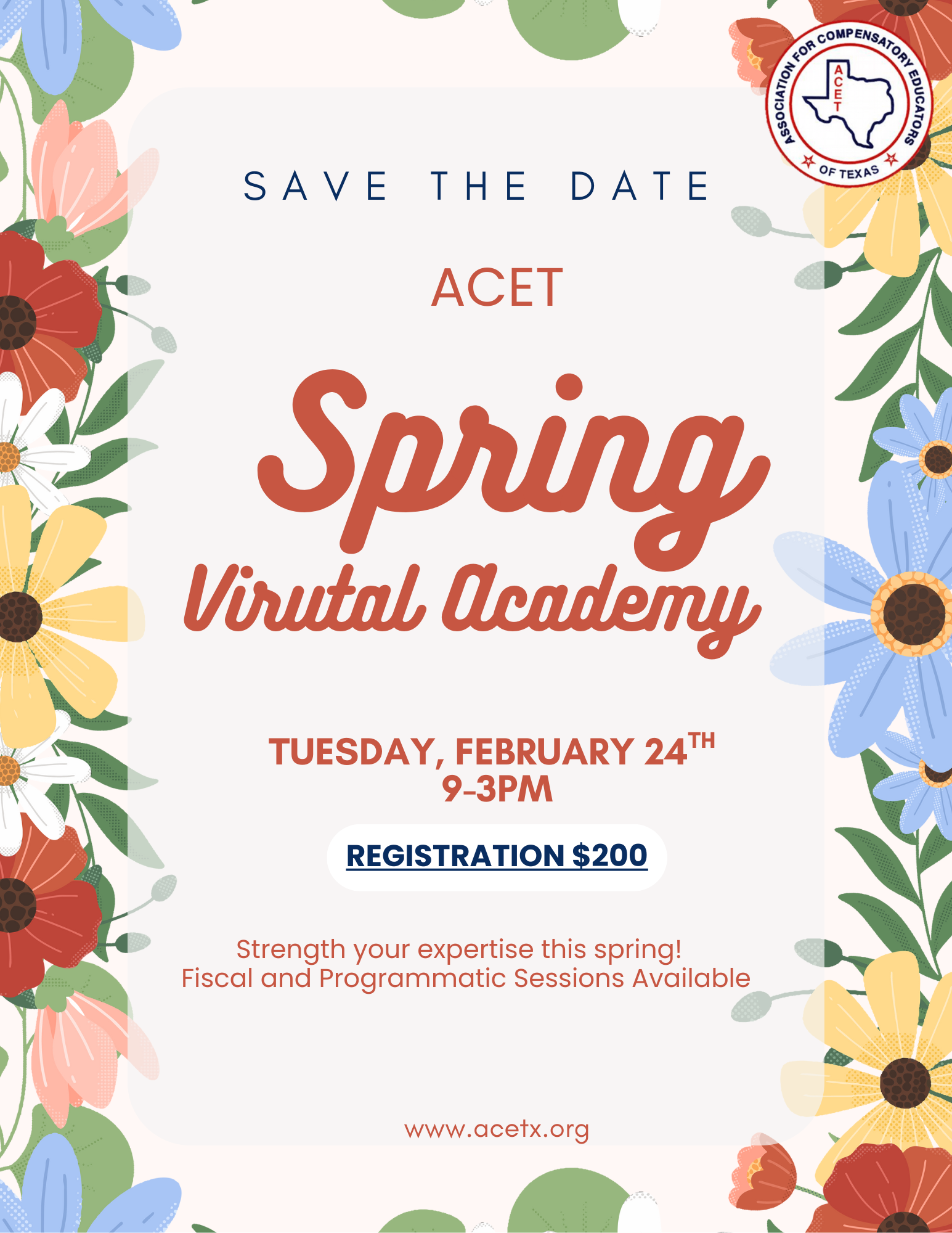 Join ACET for our Winter Virtual Academy—an engaging, interactive online learning experience designed to equip district staff with the knowledge they need to confidently navigate fiscal compliance and programmatic requirements under federal and state guidelines.